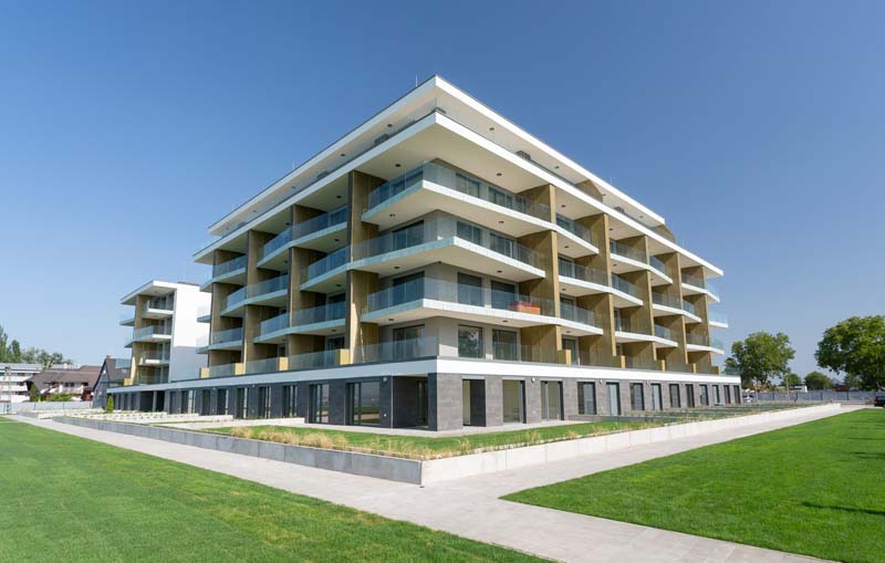 A saját vízparttal rendelkező 10.000 m2-es területre tervezett 83 lakás átadását 2017. július végére hirdettük, már az építkezés kezdetekor. A hosszú és rendkívüli hideg tél sem befolyásolta az építkezés ütemét, minden a tervnek megfelelően haladt.