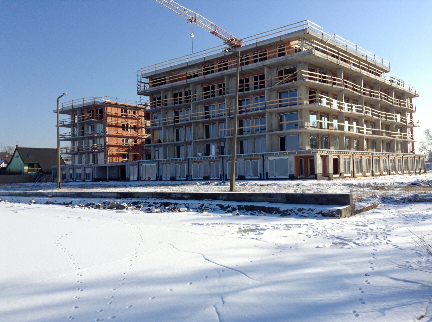 Dacolva a minuszokkal az Új évet munkával kezdték a Lelába. Jelenleg is 70 emberrel folyik az építkezés. A munkások már a fűtött lakásokban végzik a szakipari munkákat, így itt semmi sem akadályozza, hogy időre elkészüljenek a lakások.Már csak 6 hónap!